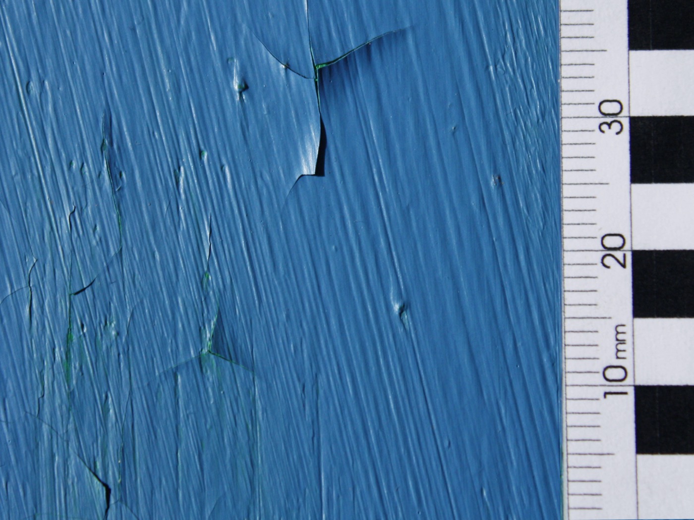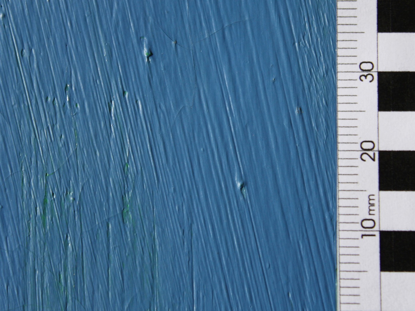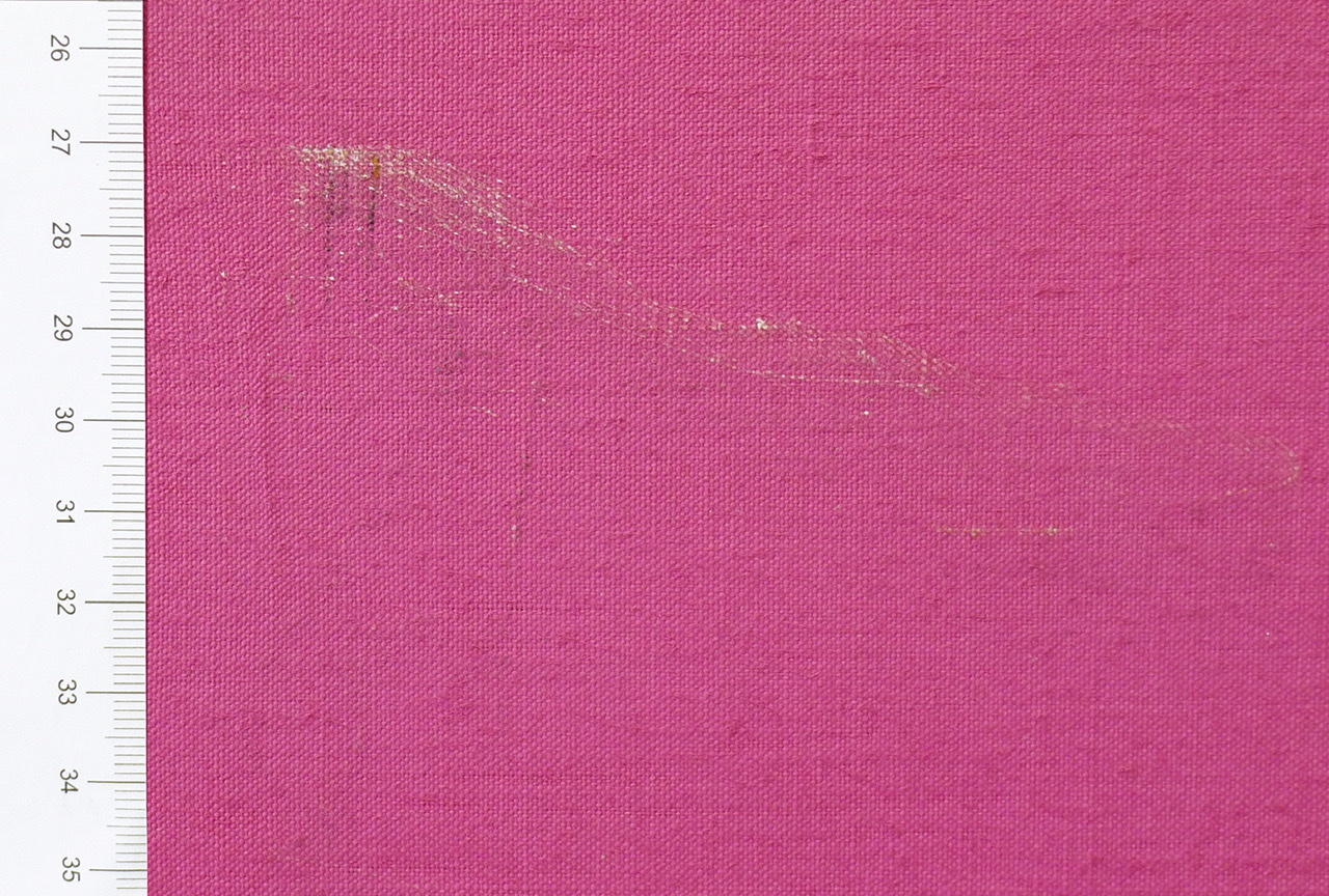 Die Retusche des oberflächlichen Kratzers in der monochromen Malereifläche ist sehr herausfordernd und aufwändig, da jeglicher Schaden extrem auffällt.
