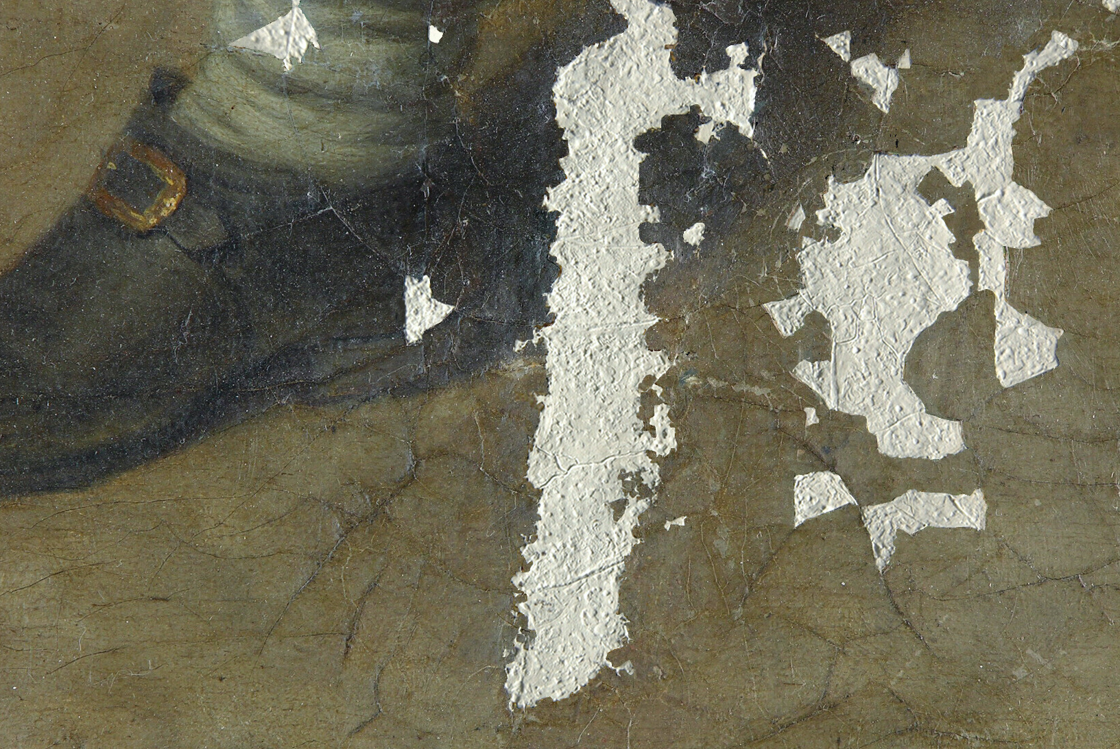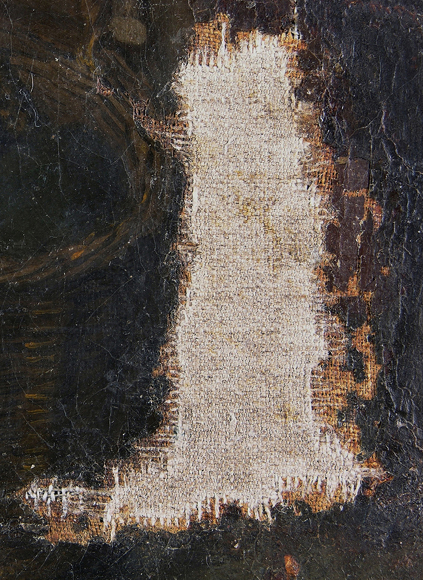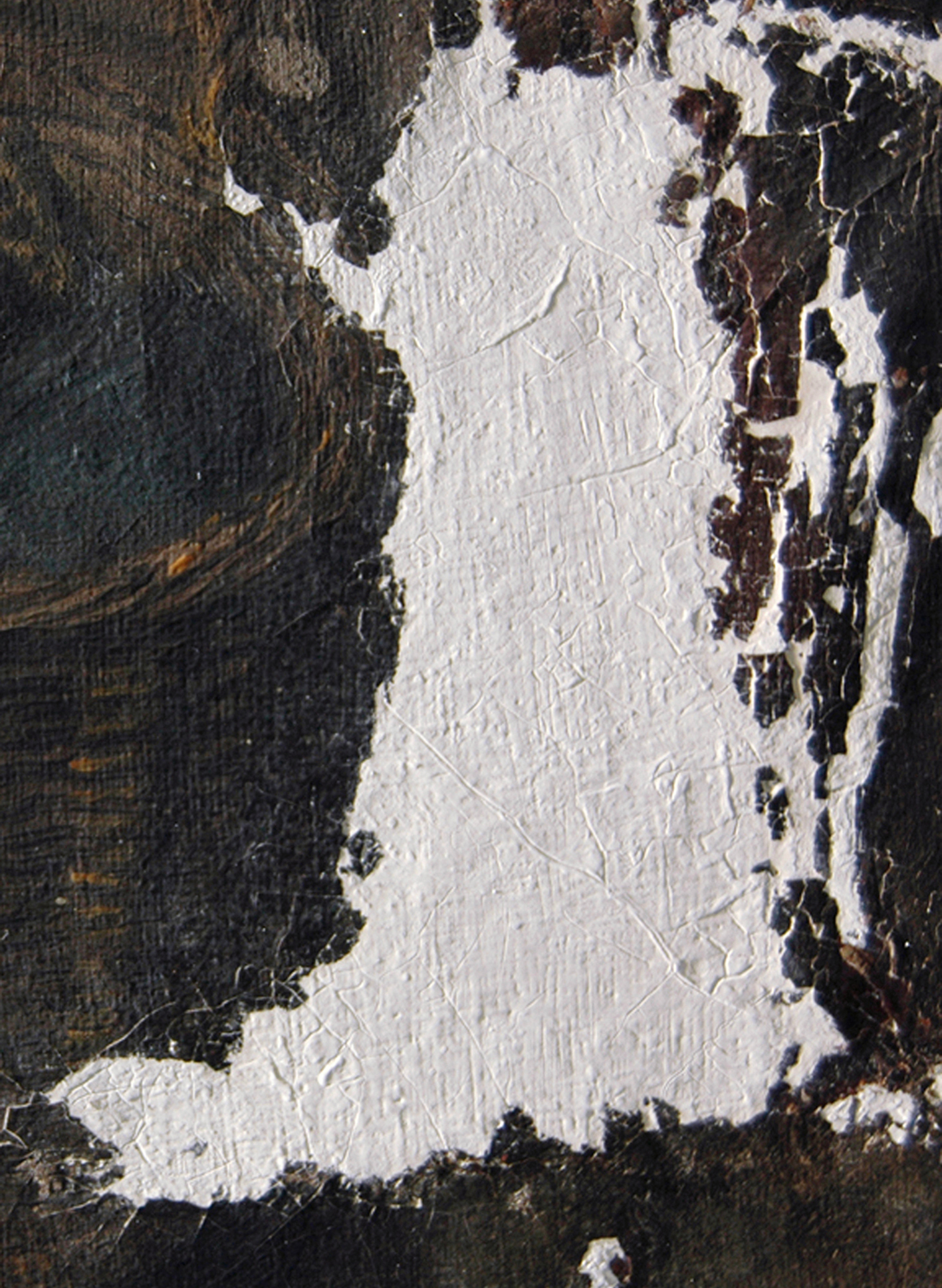 Eine gut strukturierte bzw. modellierte Kittung ist die beste Voraussetzung für eine gelingende Retusche. Hier werden nicht nur die Leinwandtextur, sondern auch das Sprungbild der originalen Bildschicht imitiert.