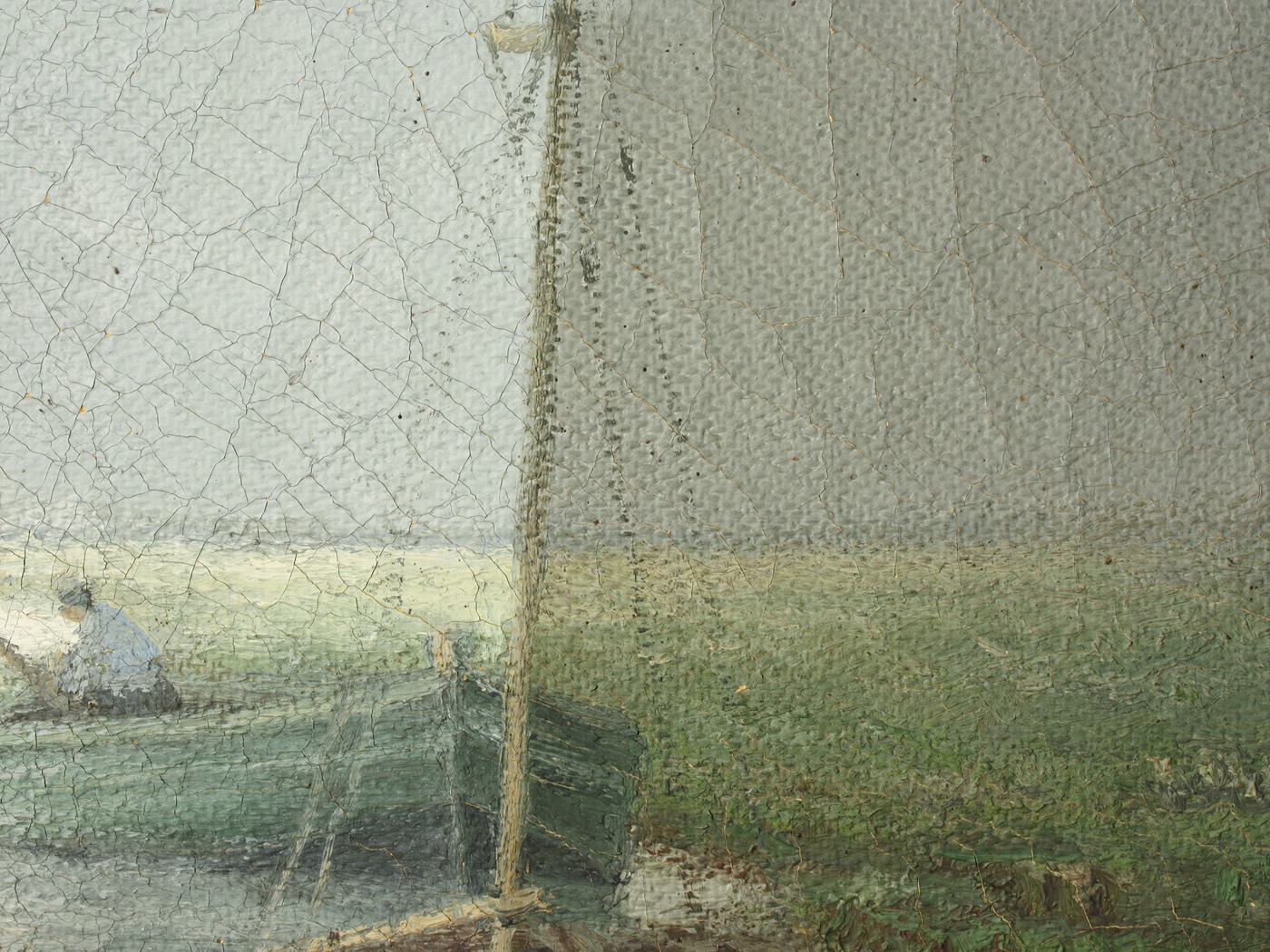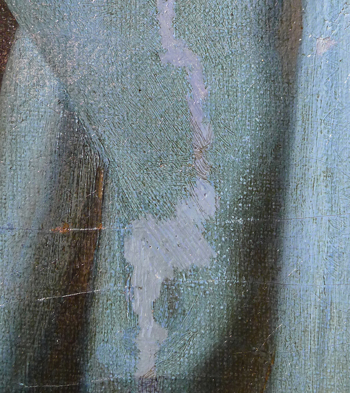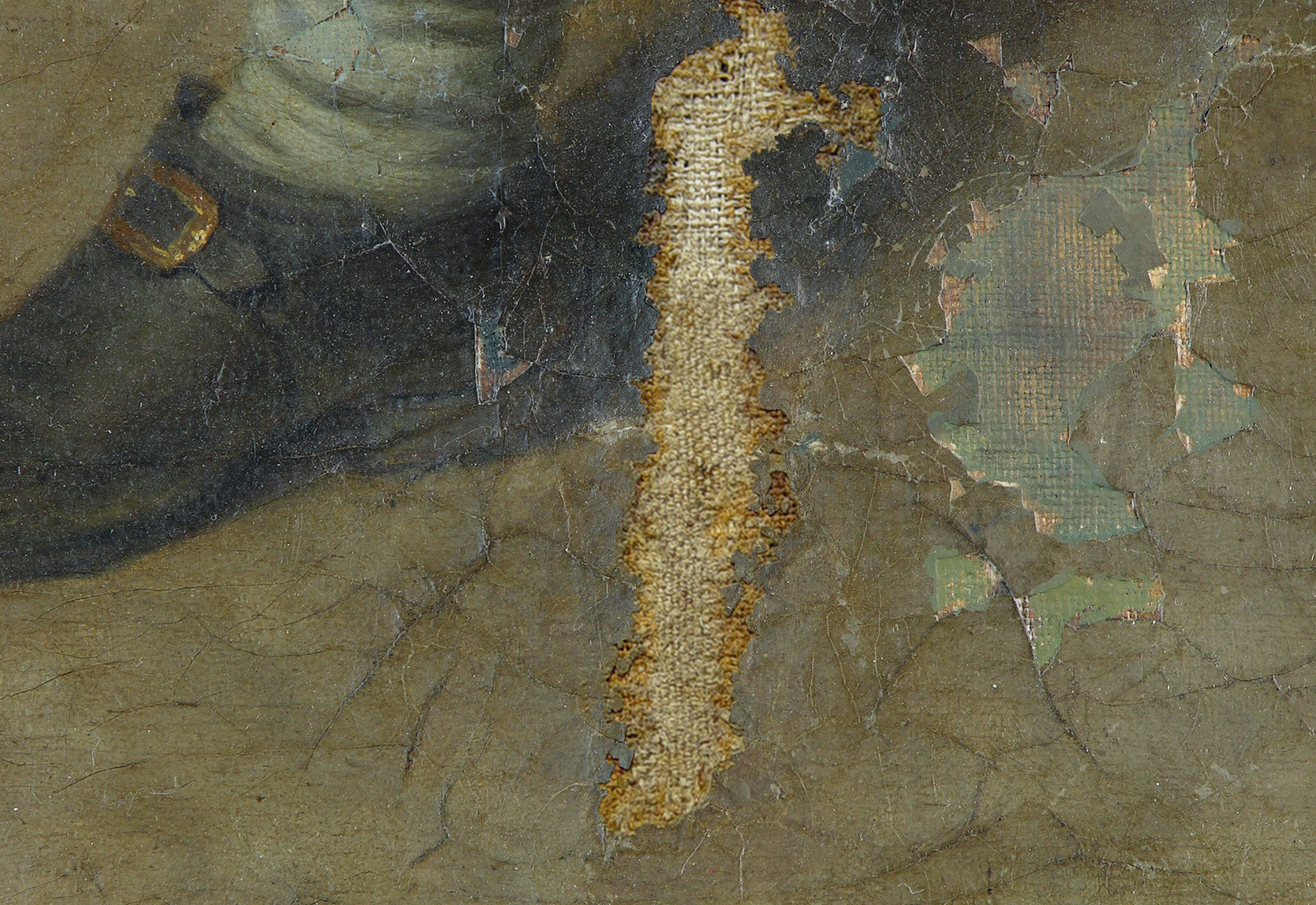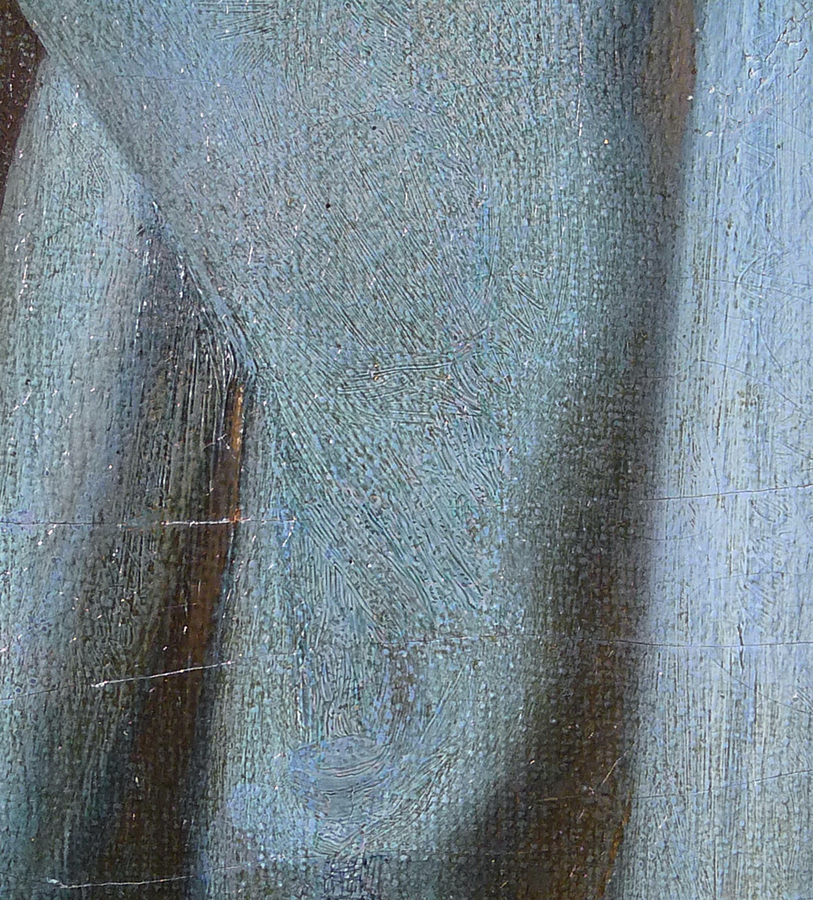 Eine gut strukturierte bzw. modellierte Kittung ist die beste Voraussetzung für eine gelingende Retusche. Hier werden nicht nur die Leinwandtextur, sondern auch das Sprungbild der originalen Bildschicht imitiert.