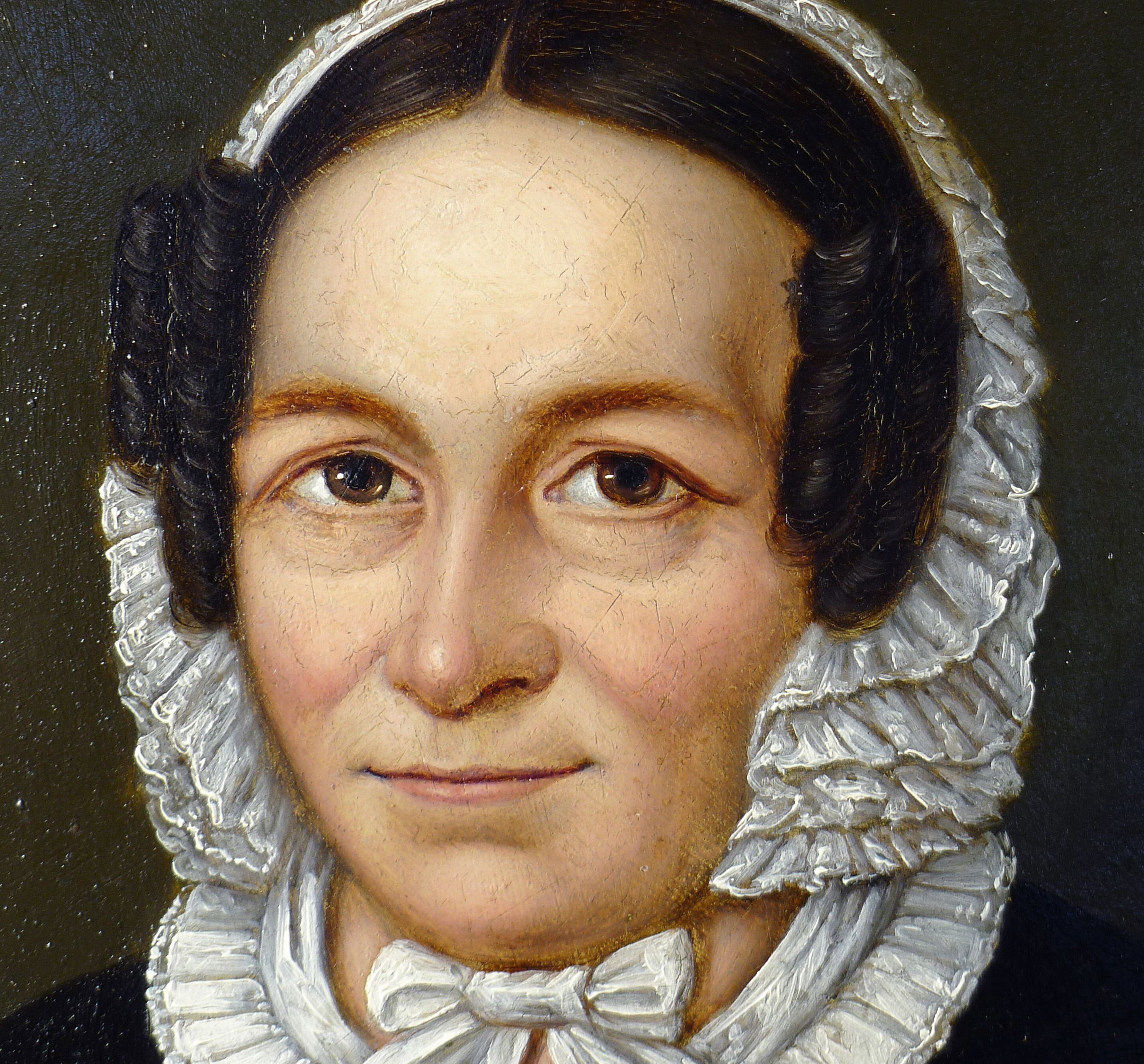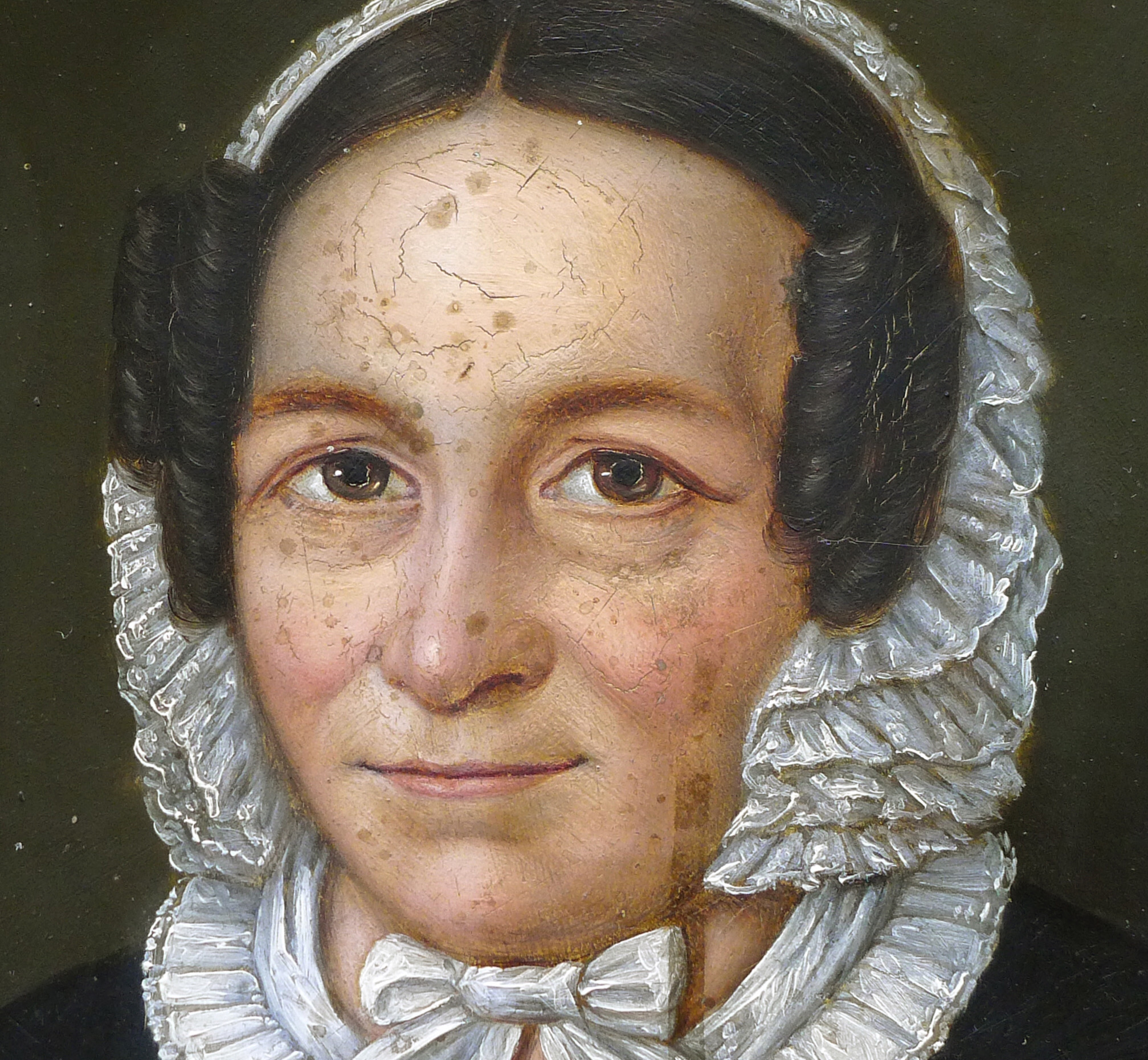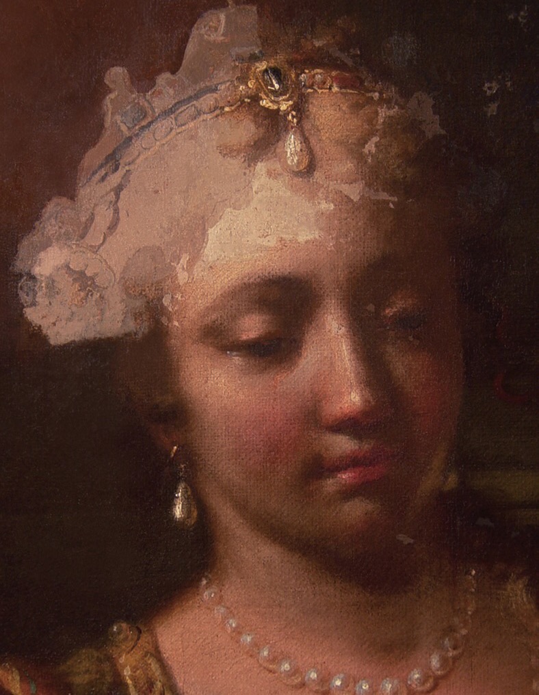 Die Rekonstruktion eines Teils des Kopfes, der Haare und des Kopfputzes passierte auf der Basis eines historischen Schwarzweißfotos, welches das Gemälde im unbeschädigten Zustand zeigte.