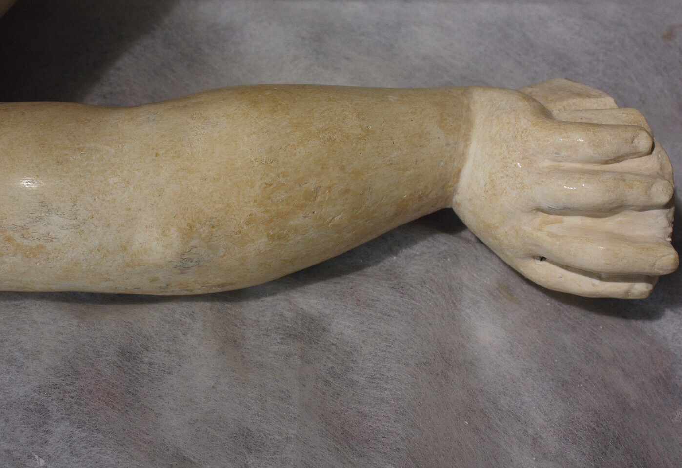 Um die gekittete Fehlstelle gut in das Original zu integrieren wird sie der Oberfläche der Umgebung angepasst und dementsprechend modelliert.