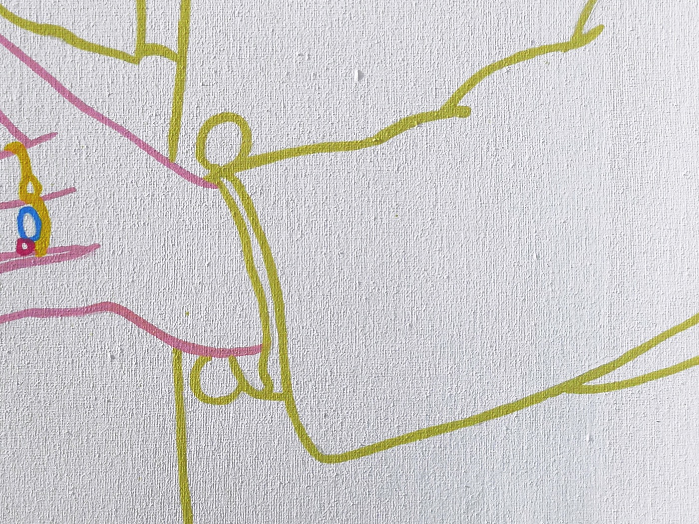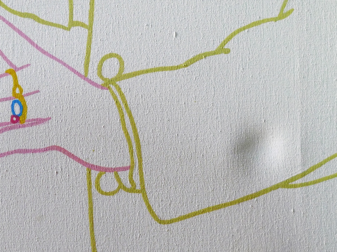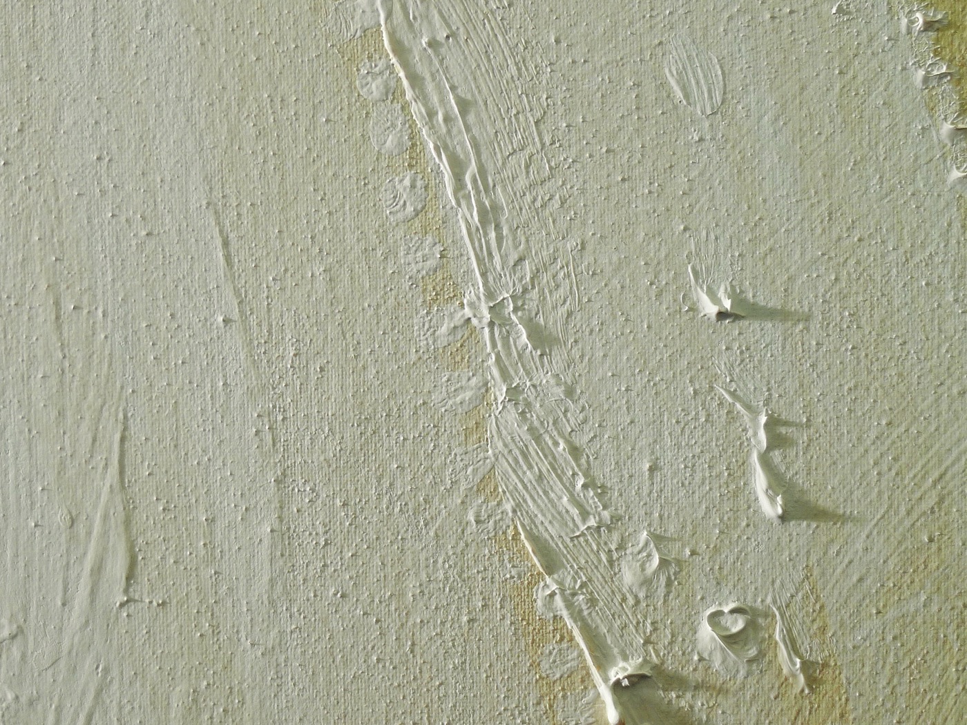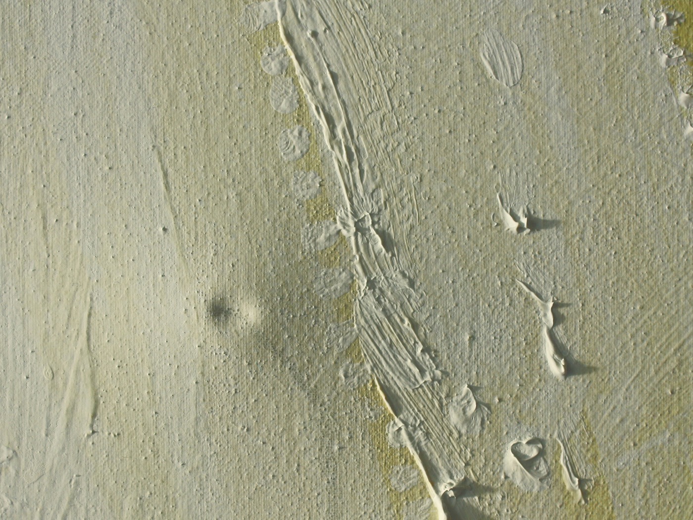 Hier werden die abgeriebenen Leinwandknötchen im Prinzip Punkt für Punkt, mit Gouachefarben, geschlossen.